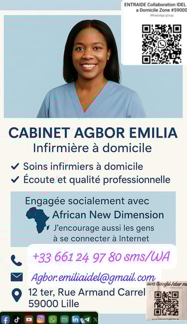Merci pour votre confiance. Cabinet Agbor Emilia, infirmière à domicile à Lille.