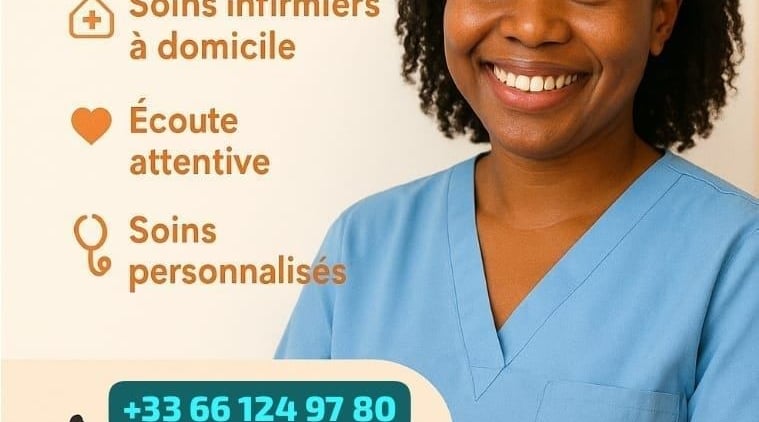 Services : Soins infirmiers à domicile (pansements, injections, perfusions, surveillance clinique, soins postopératoires, etc.) sur prescription médicale.